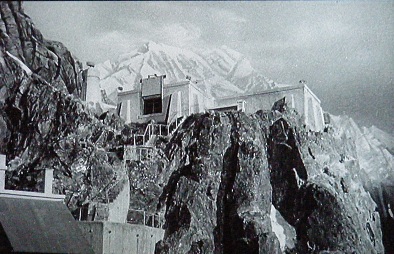 Naturally, Alan saw this in the Andes, too. Why did it take so long for him to mention all these things, again? Truscott announces that the radioactive cloud is making a bee-line for the inn, so Alan finally pulls his head out of his butt and sends everyone on the tram and up to the observatory in the hopes they will be safe. Hans, the barkeep, panics and drives away, directly towards the cloud. The fool! B-movies, by the way, are the only time you will hear people use those two words together to address a person carrying out an unintelligent idea. The tram thing is a good idea except for two things: 1- trams operate using cables, which are susceptible to extreme cold (like the phone lines)